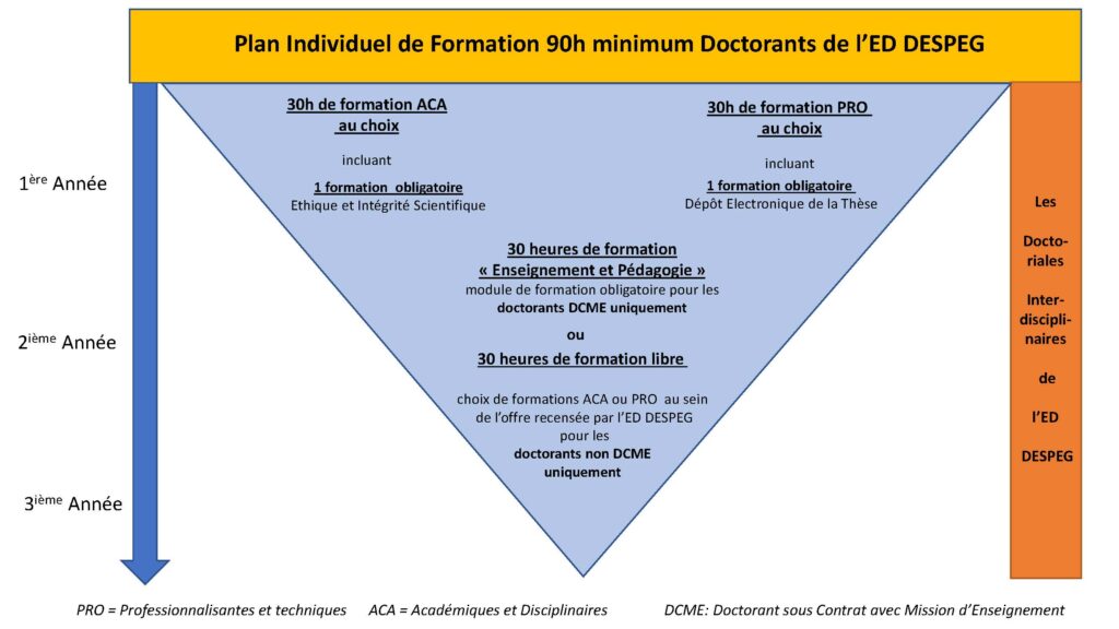 Chaque Doctorant doit établir son Plan Individuel de Formation (PIF) en concertation avec son(sa) directeur(trice) de thèse et co-directeurs(trices), idéalement dans les 3 premiers mois de la thèse de Doctorat.